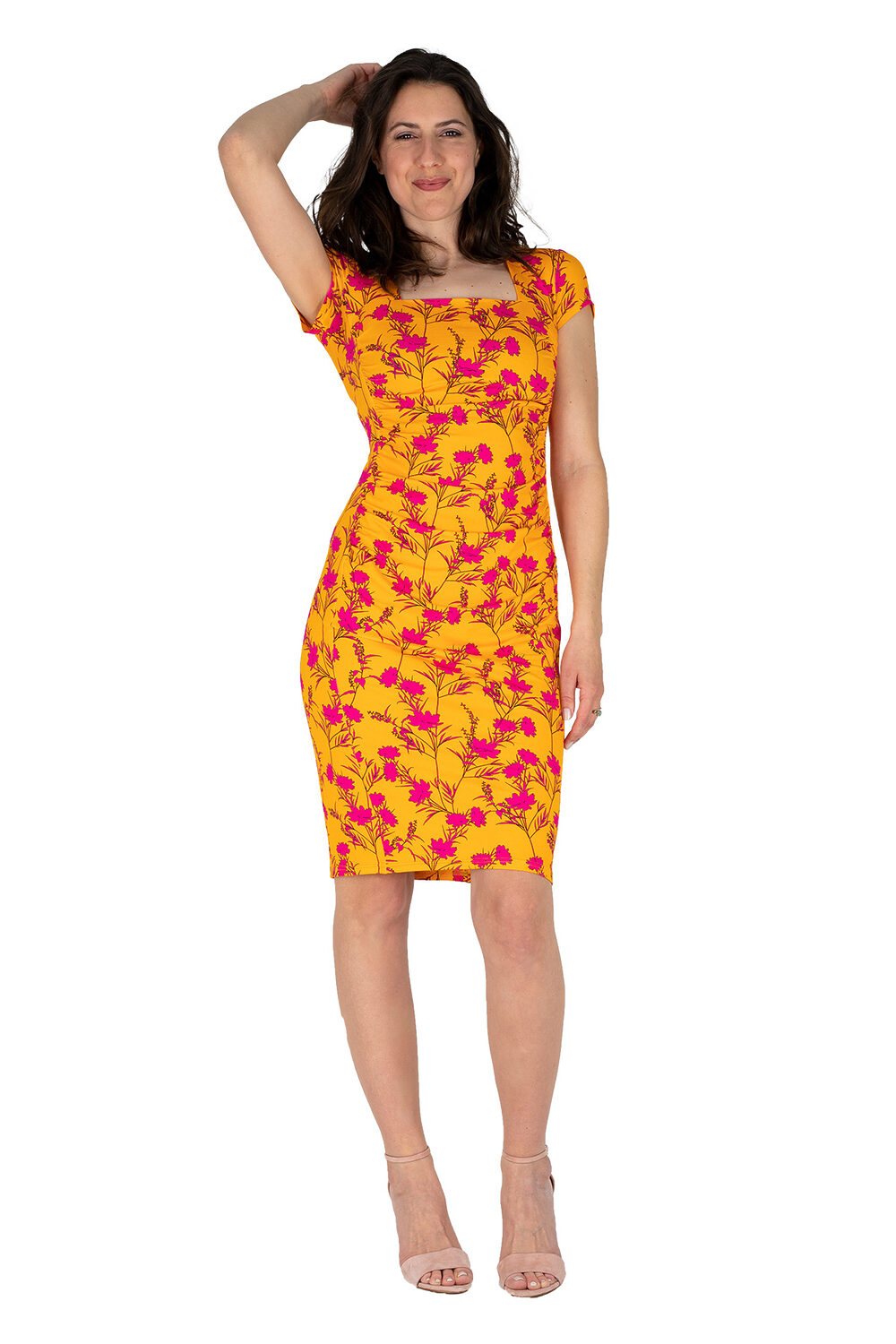 Unser schmales Basic-Kleid. Der Schnitt zeigt viel Liebe zum Detail. Die Raffung im Vorderteil kaschiert weibliche Rundungen perfekt. Die formgebenden Längsnähte strecken die Figur. Im Rücken gibt es in der Taille eine kleine Raffung. Die Passenabtrennung im oberen Bereich ist nicht nur dekorativ sondern auch perfekt platziert. Sie kaschiert die darunterlegende BH-Linie perfekt!