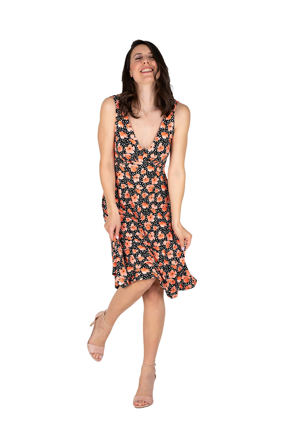 schwingendes Sommerkleid Sylvie in schwarz mit Mohnblumen